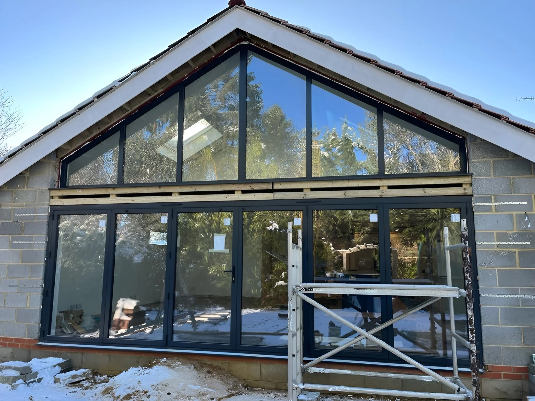 Seamless Connection: This project is a testament to our commitment to creating spaces that seamlessly integrate indoor and outdoor living. The aluminium bifold door, combined with the gable end triangular window, creates a harmonious connection that enhances the overall living experience.