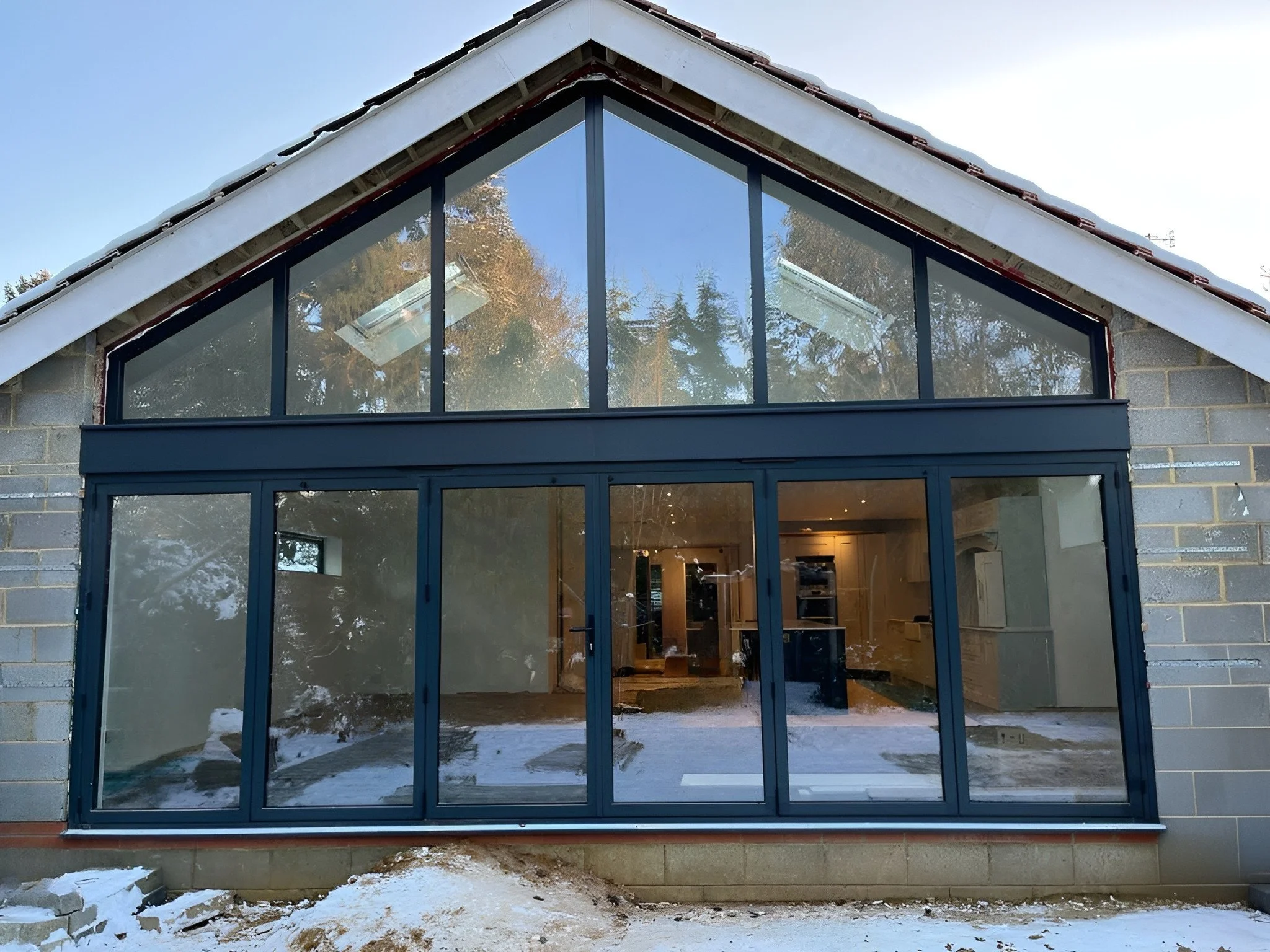 To complement this exceptional bifold door, we integrated a gable end triangular window that adds a touch of architectural brilliance to the space. The window not only enhances the aesthetic appeal of the property but also maximizes natural light penetration, creating an inviting and refreshing atmosphere indoors.